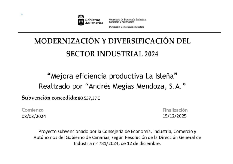 SUBVENCIÓN CONCEDIDA PARA MODERNIZACIÓN DE EMPRESA YA EXISTENTE